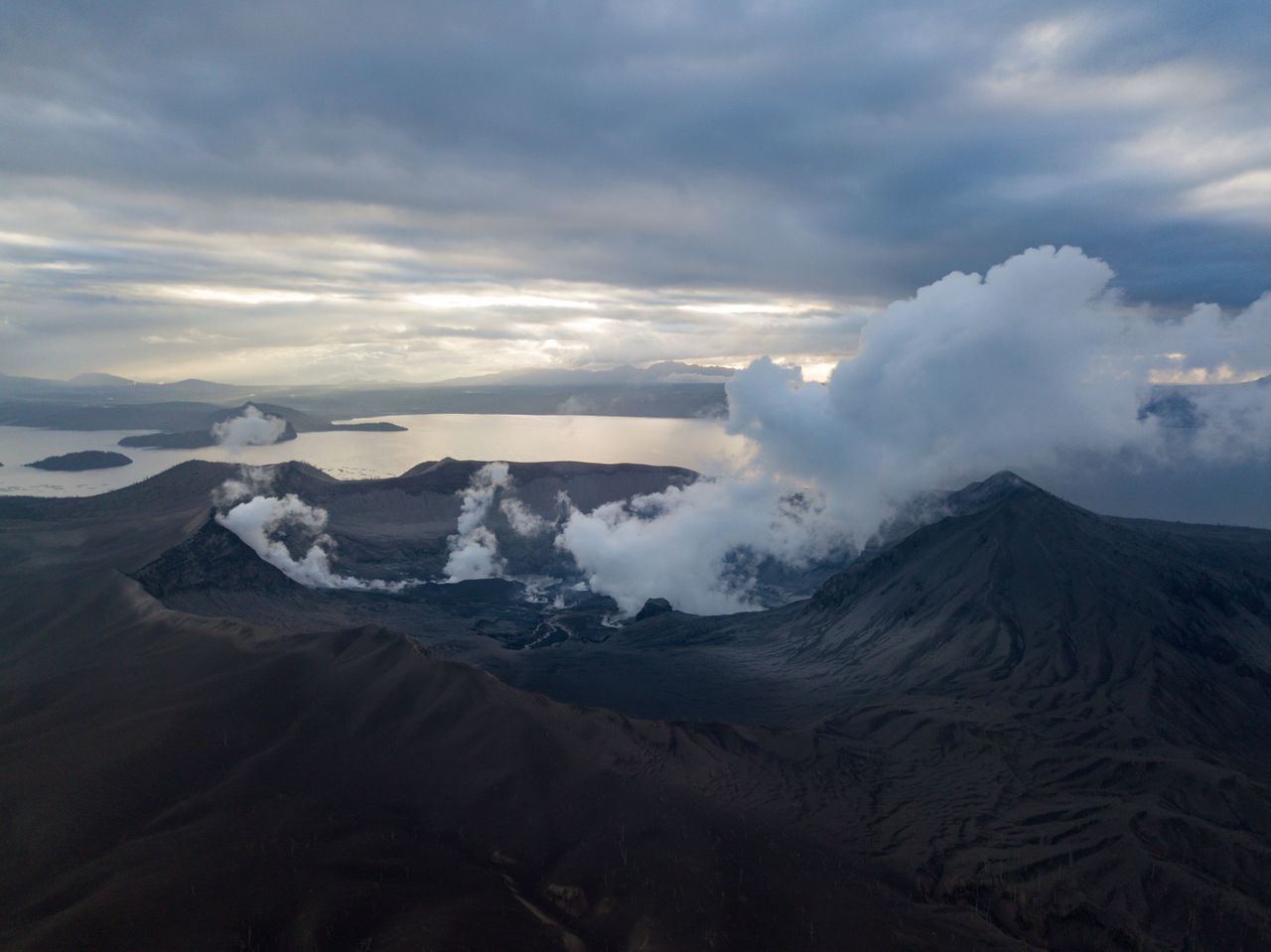 An aerial view shows the Taal volcano in Batangas province on Jan 20, 2020.