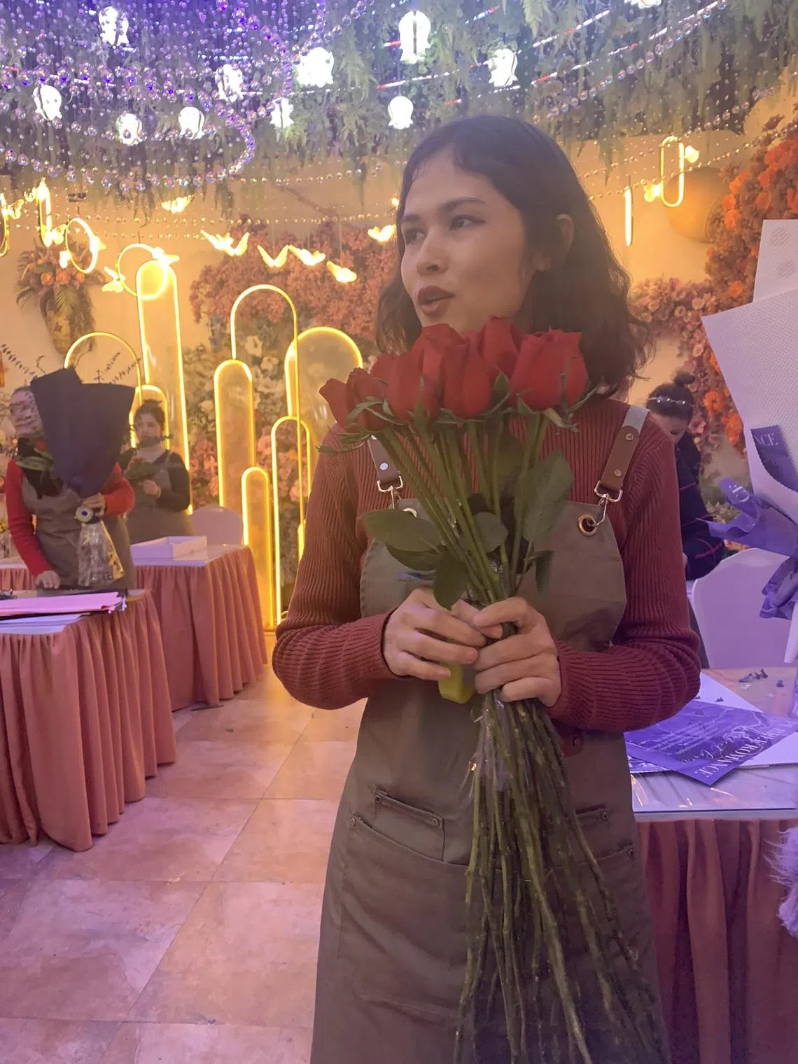 “We have Uighurs, Kazakhs, Hui, Han all living here together. There’s no talk of religion. We sometimes visit each other’s homes or eat and play together,” said 30-year-old Ayshemgul Yasin, putting together a bouquet of red roses in the flower shop. She works up to eight hours a day for between 3,500 yuan (S$660) and 6,000 yuan a month.