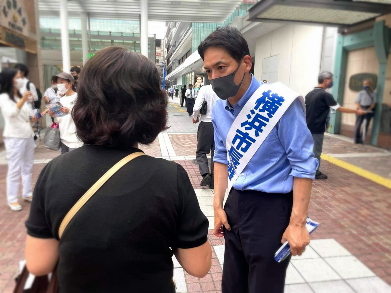 Dr Takeharu Yamanaka campaigning in Yokohama last month, ahead of its mayoral election on Aug 22.