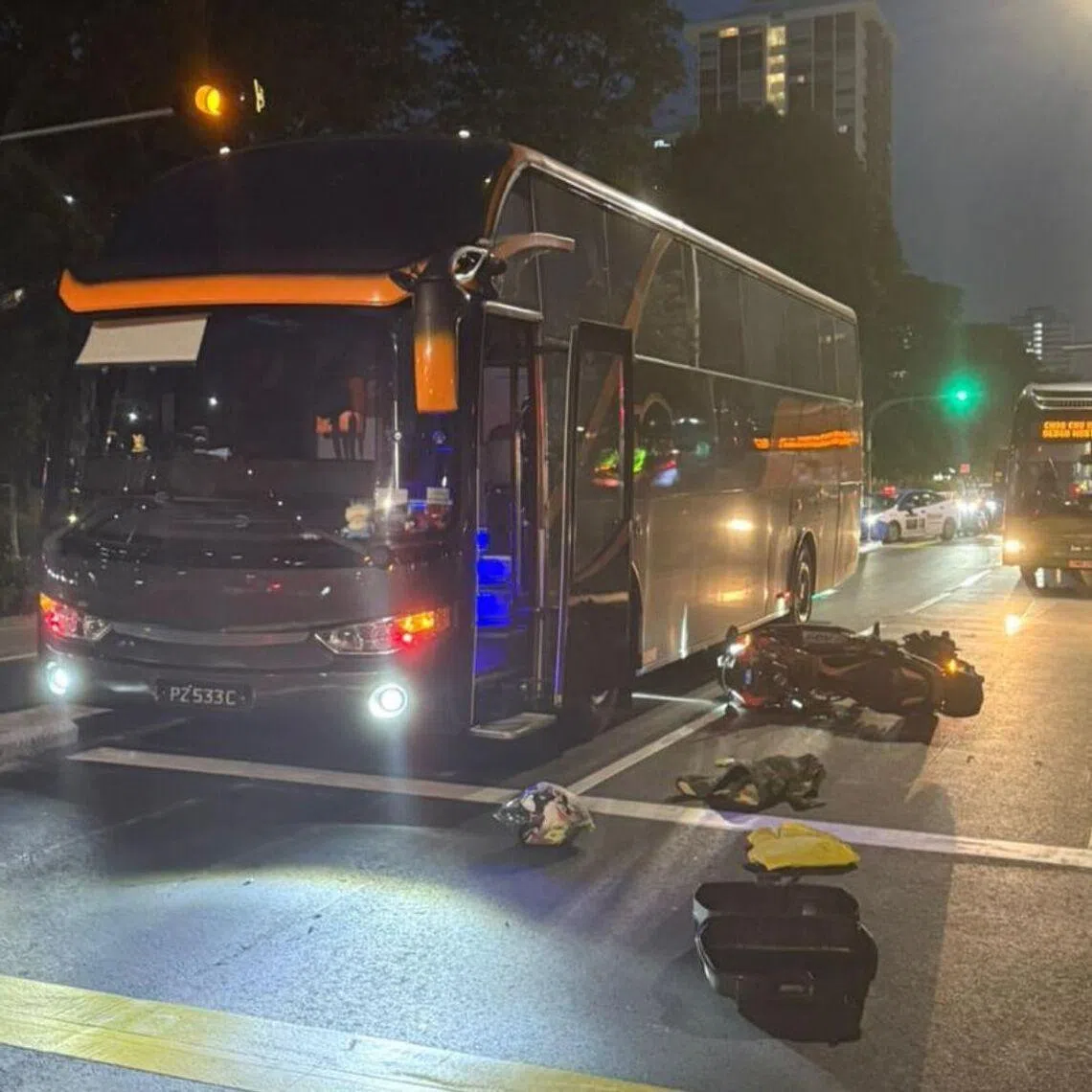Motorcyclist taken to hospital after accident with car and private bus in Bedok