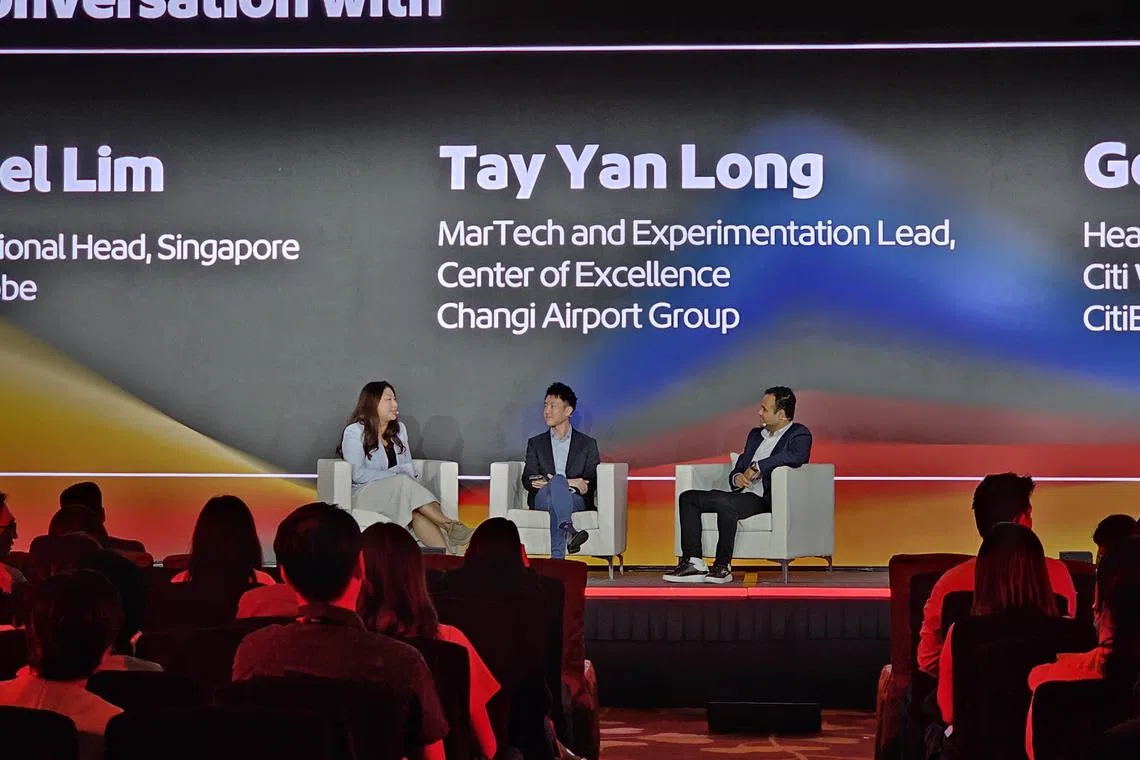 (From left) Ms Mel Lim, Adobe’s regional head, Singapore, Mr Tay Yan Long, senior manager, Enterprise Digital Ecosystem & Business at Changi Airport Group, and Mr Gourab Kundu, head of digital growth for Asia South at Citi Wealth, share insights on how GenAI is transforming marketing and customer engagement. PHOTO: ADOBE