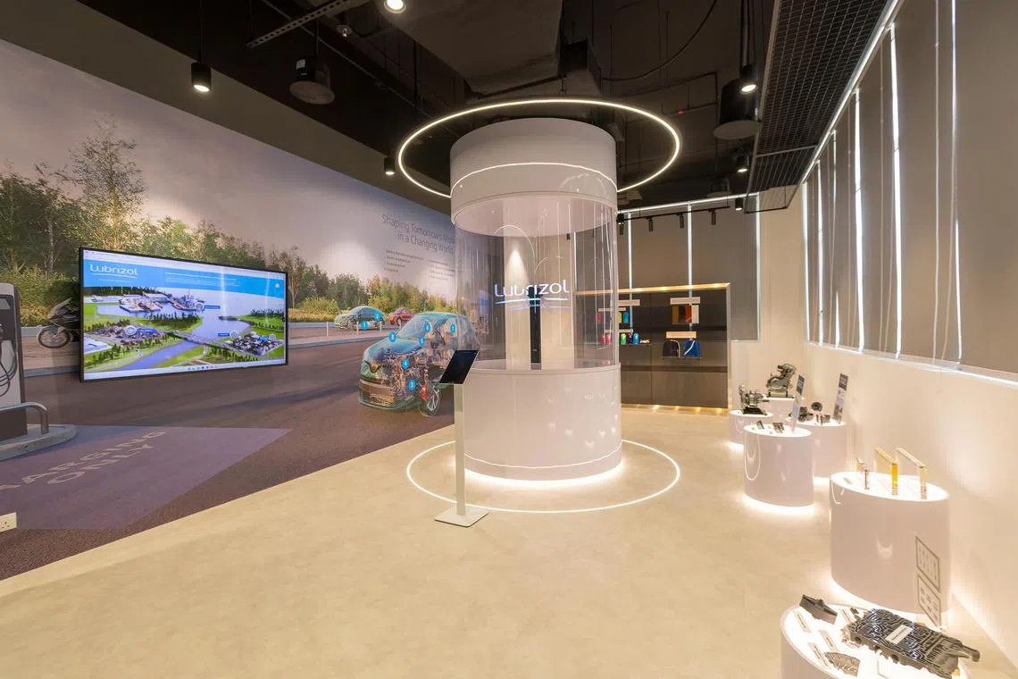 An exhibit showcasing Lubrizol’s mobility products at the company’s new innovation centre.
