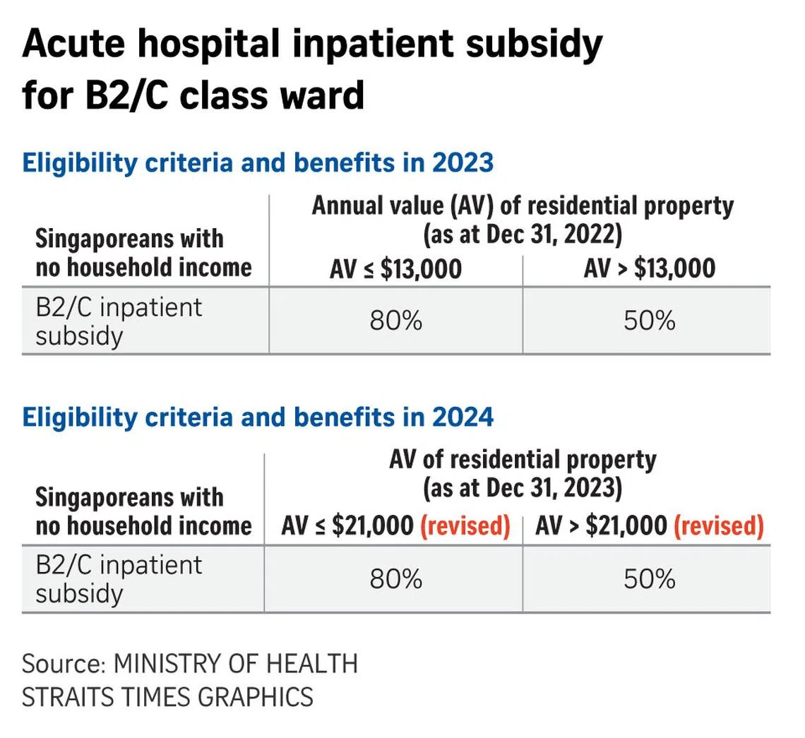 Separately, the Ministry of Health (MOH) announced that any change in subsidy or assistance arising from changes in residential property annual values will be automatically extended to healthcare schemes.