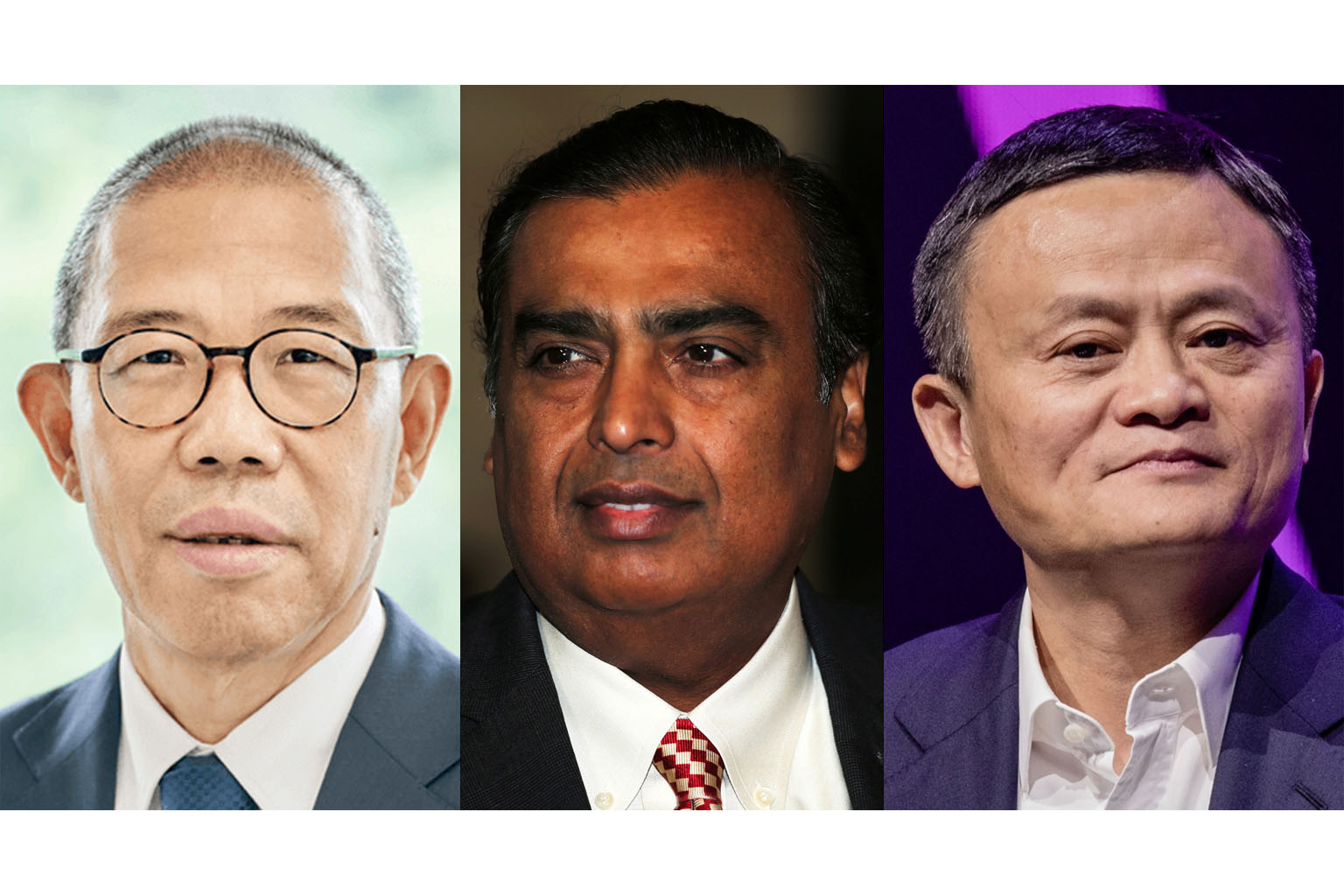 'LONE WOLF' ZHONG SHANSHAN (left), INDIAN TYCOON MUKESH AMBANI (centre), CHINESE TECH TITAN JACK MA (right)
