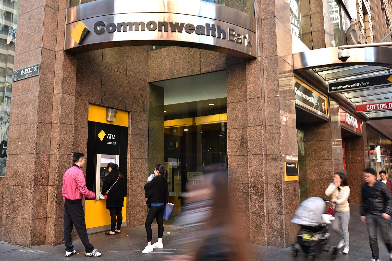 People walk past a Commonwealth Bank branch in the central business district of Sydney, on Aug 8, 2017.