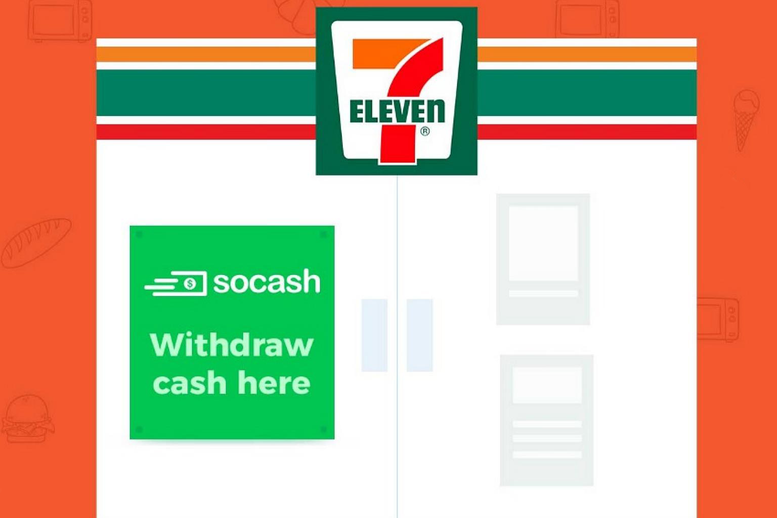 SINGAPORE - Cardless cash withdrawal app developer soCash has expanded its merchant network to 7-Eleven's 370 stores in Singapore, soCash said on Tuesday (June 19).