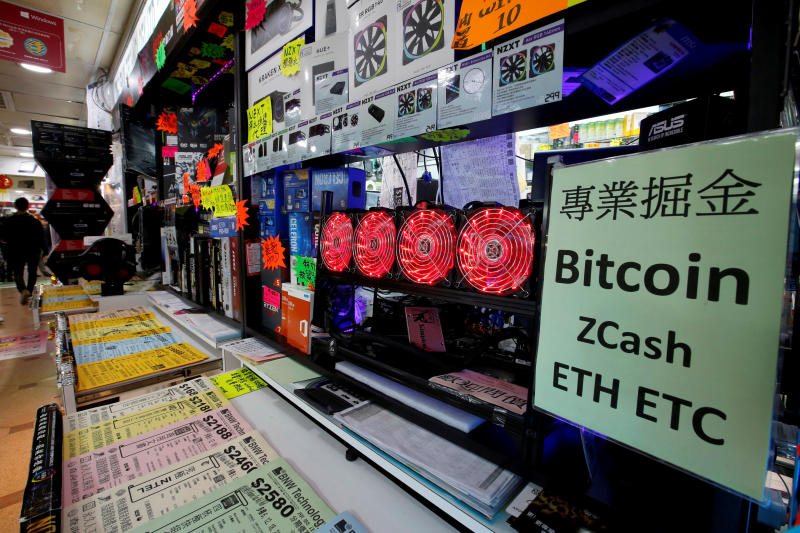 A cryptocurrency mining computer at a computer mall in Hong Kong. Cryptocurrency mining equipment maker Canaan Inc's application lapsed on Nov 15, 2018, six months after it was filed.