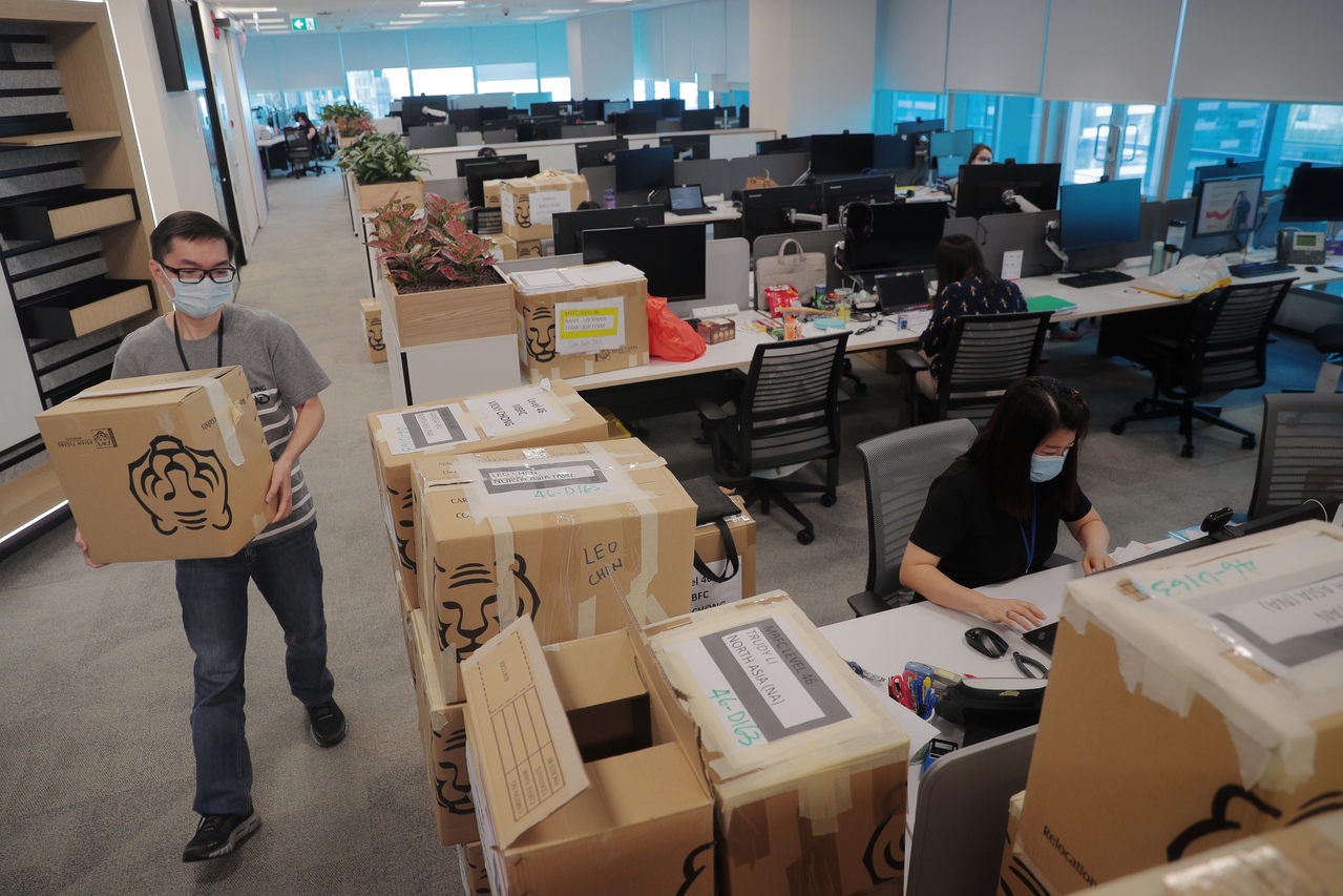 Vice-president of customer service Alan Chua moving into HSBC’s new head office at Marina Bay Financial Centre Tower 2 on June 19, 2020.