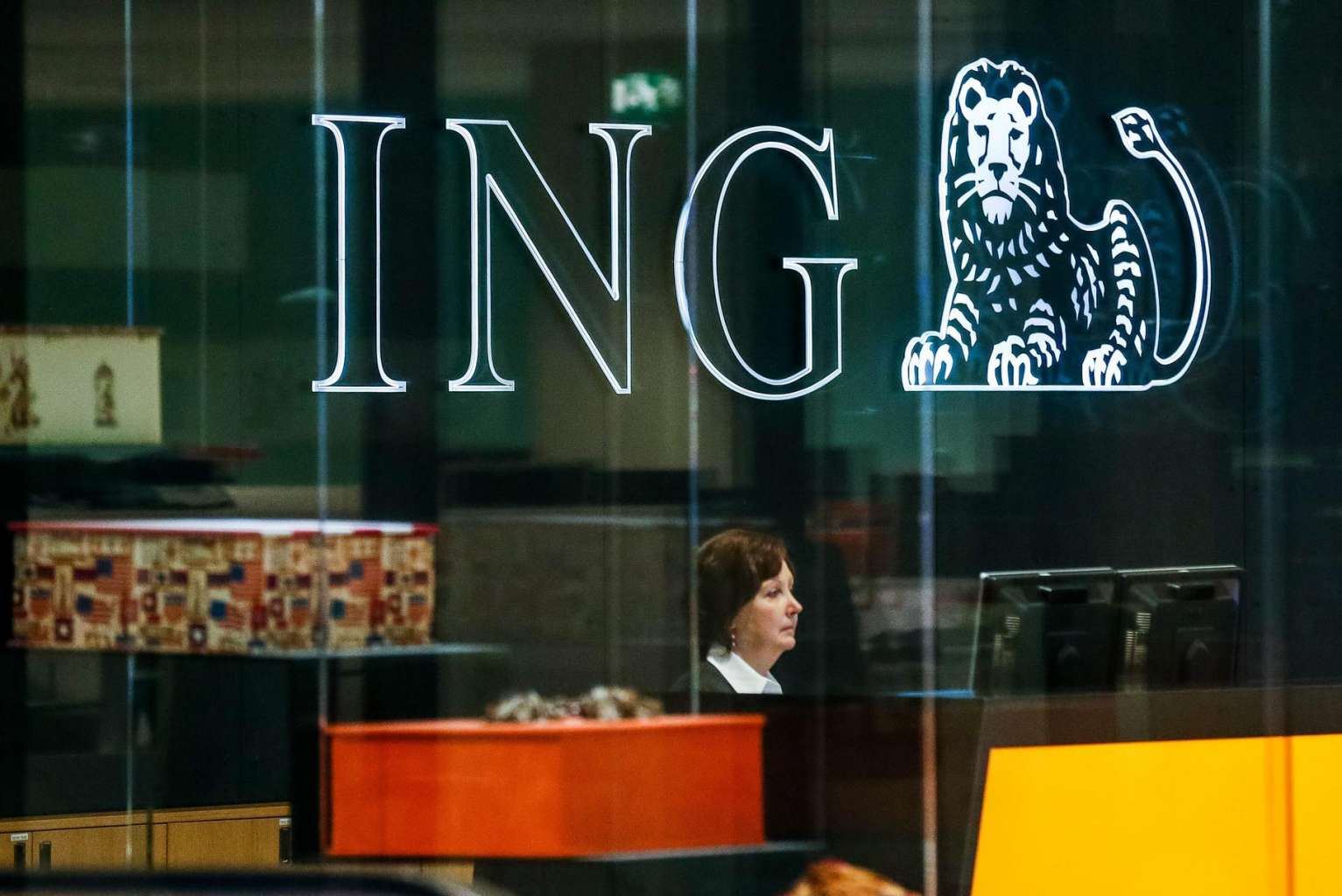A general view of ING Bank logo on the bank's headquarters in Brussels.