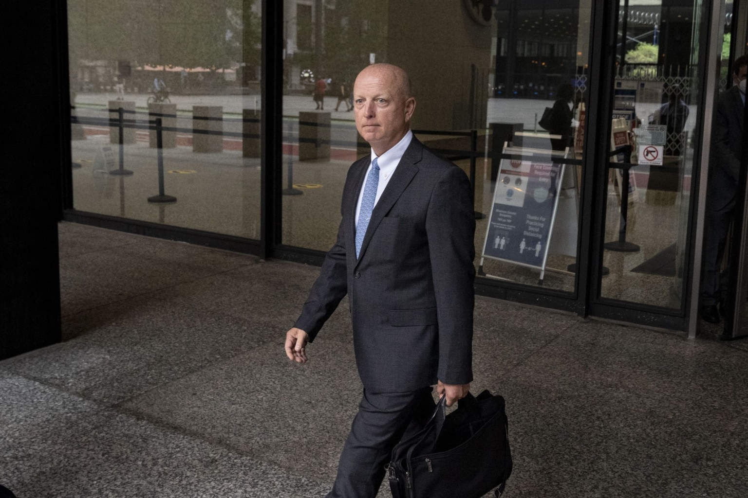 Former JPMorgan Chase & Co precious metals trader Gregg Smith departing from federal court in Chicago, on July 8, 2022.