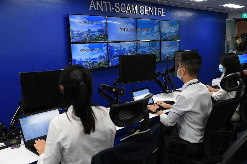 Officers at the Singapore Police Force's Anti-Scam Centre.