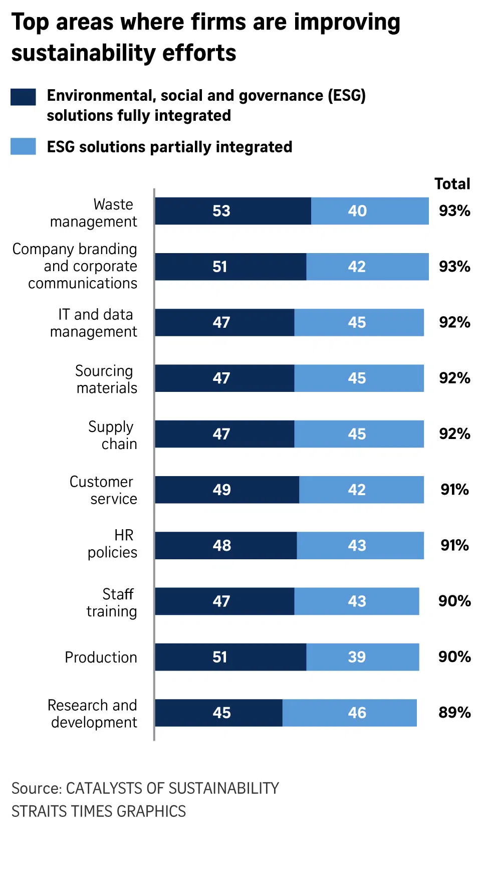 Ms Yulanda Chung, head of sustainability for institutional banking at DBS, said SMEs can start by identifying significant ESG elements to focus on and evaluating whether these factors could improve their bottom line.