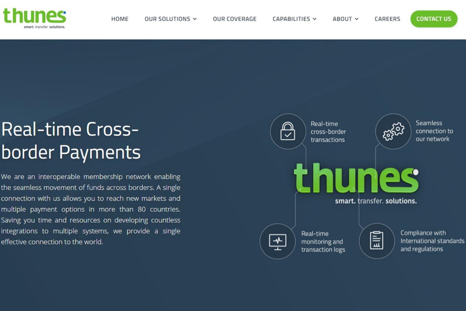 The B2B (business-to-business) cross-border payments network allows corporates and financial institutions to move funds and provide financial services in emerging markets. Thune's platform, it says, helps to connect merchants such as mobile wallet operators, money transfer operators and banks in more than 80 countries and 60 currencies.