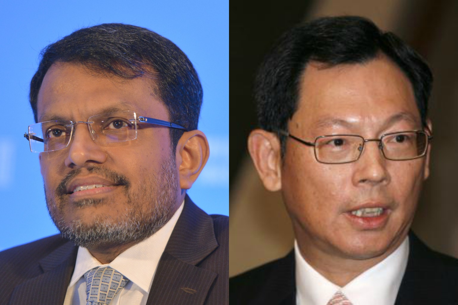 Mr Ravi Menon, managing director of the Monetary Authority of Singapore (MAS), and Mr Norman Chan, chief executive of the Hong Kong Monetary Authority (HKMA). MAS and HKMA have signed a fintech cooperation agreement.