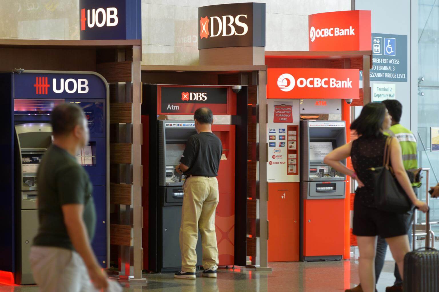 ATM machines from UOB, DBS and OCBC Bank at Changi Airport Terminal 2.