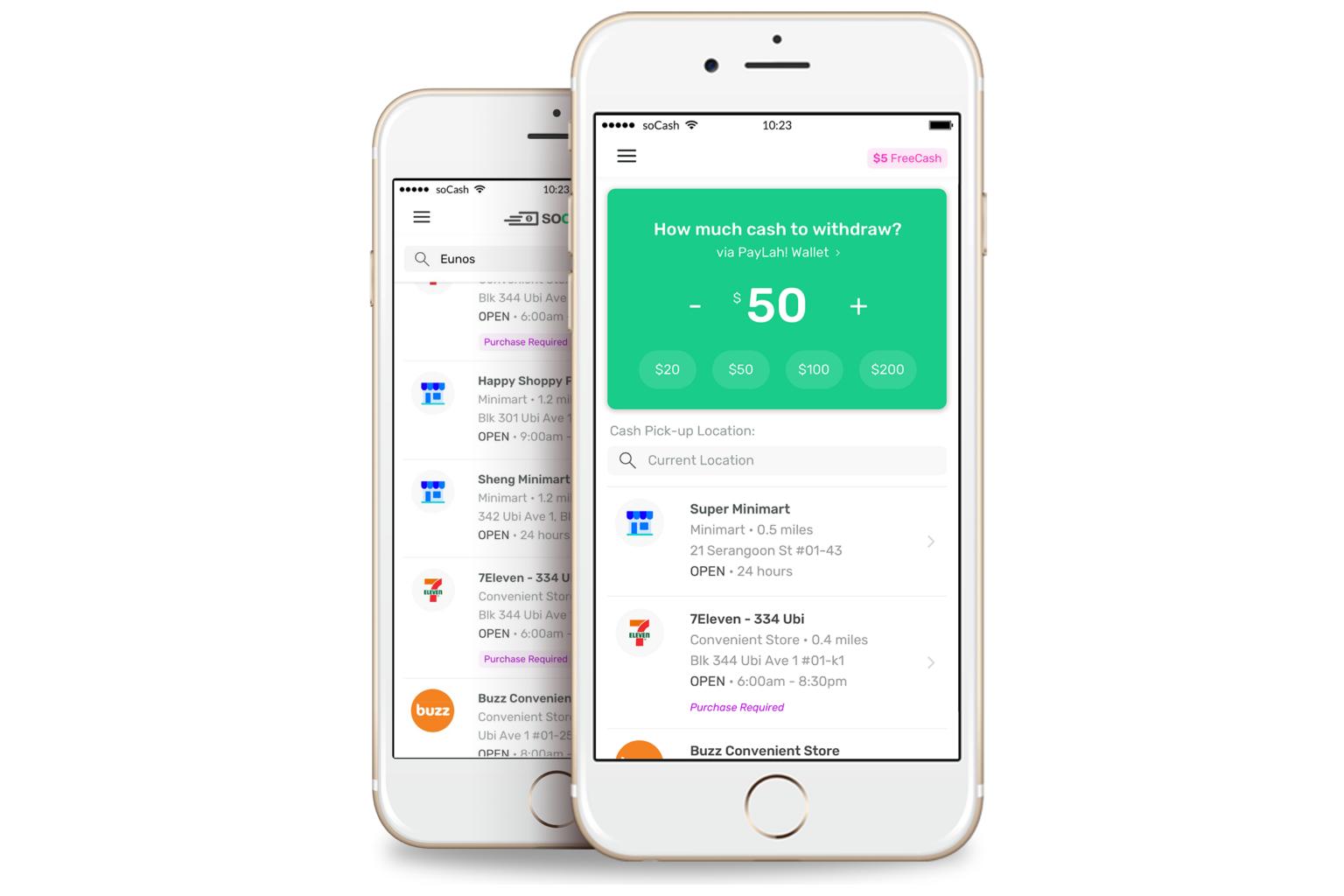 soCash's mobile app turns shops into ATM alternatives, allowing users to withdraw cash or make loan applications at the checkout.