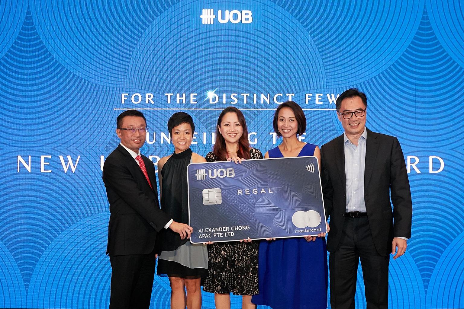 UOB's head of industry group, commercial banking Choo Kee Siong, Mastercard's country manager Deborah Heng, UOB's head of personal financial services Singapore Jacquelyn Tan, UOB's head of cards and payments Singapore Choo Wan Sim and UOB's head of business banking Singapore Mervyn Koh at the launch of the UOB Regal Business Metal Card.
