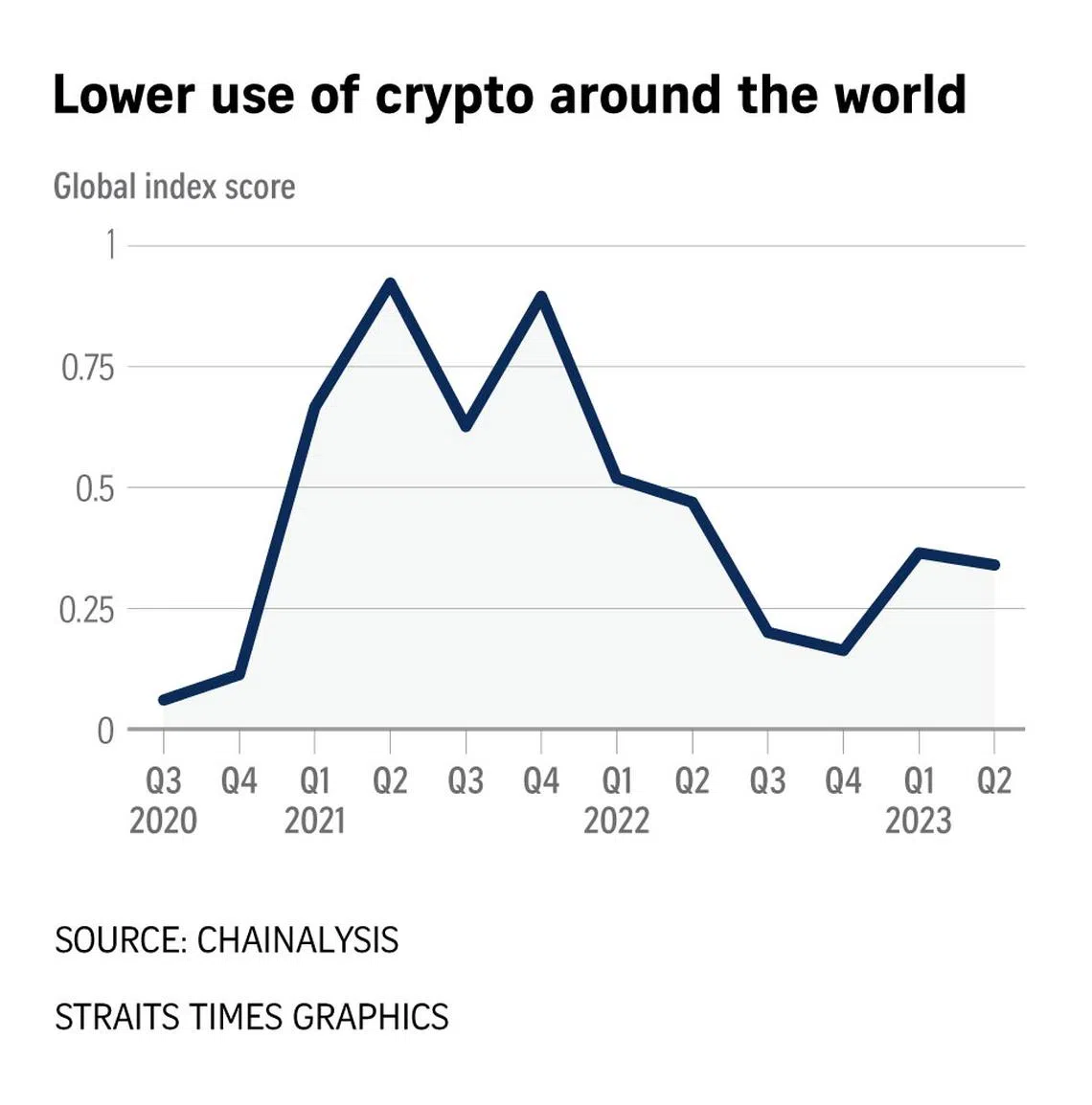 SINGAPORE - The use of cryptocurrency by the average person in Singapore remained low in the past year, and did not grow as fast as in some other emerging Asian markets such as Vietnam and the Philippines.