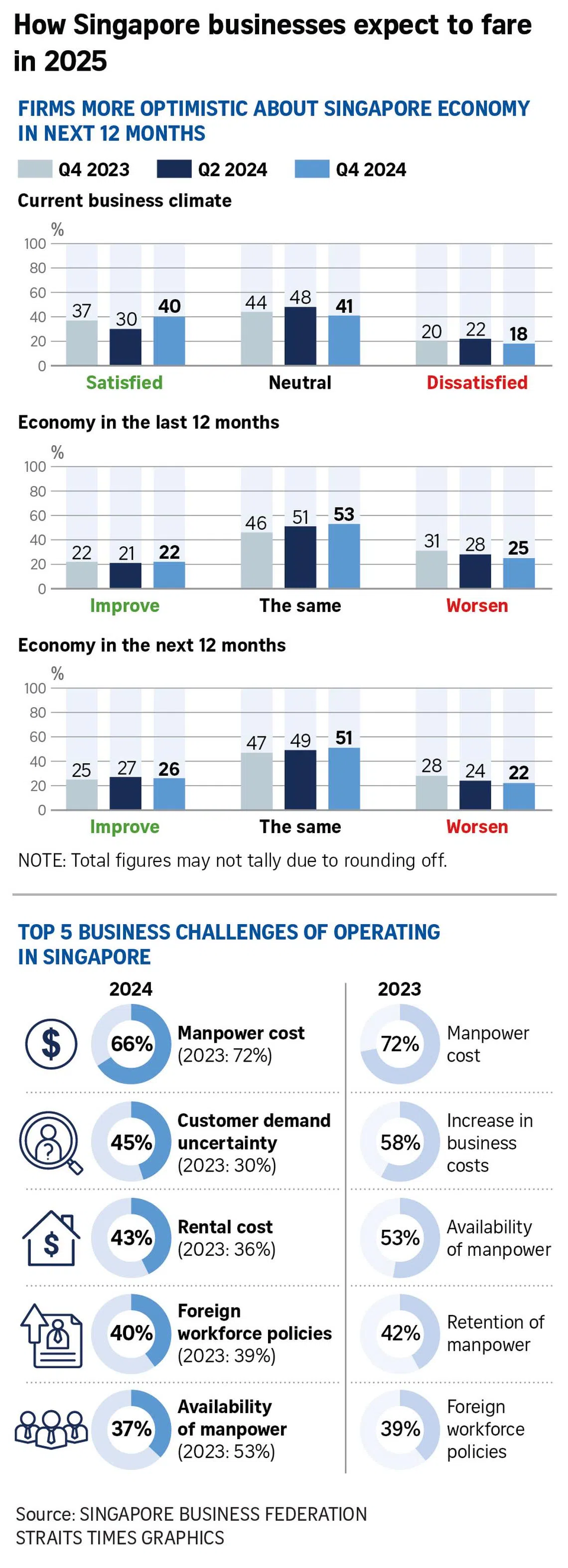 Even though businesses were more optimistic about 2025, manpower costs were the top concern for 66 per cent of the companies surveyed.