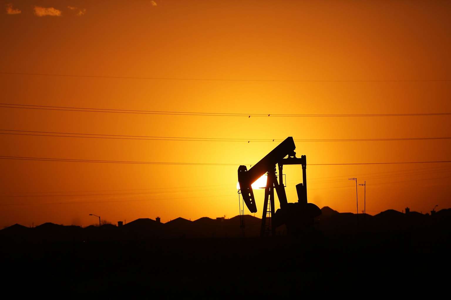 A pumpjack sits on the outskirts of town at dawn in the Permian Basin oil field on Jan 21, 2016, in the oil town of Midland, Texas.