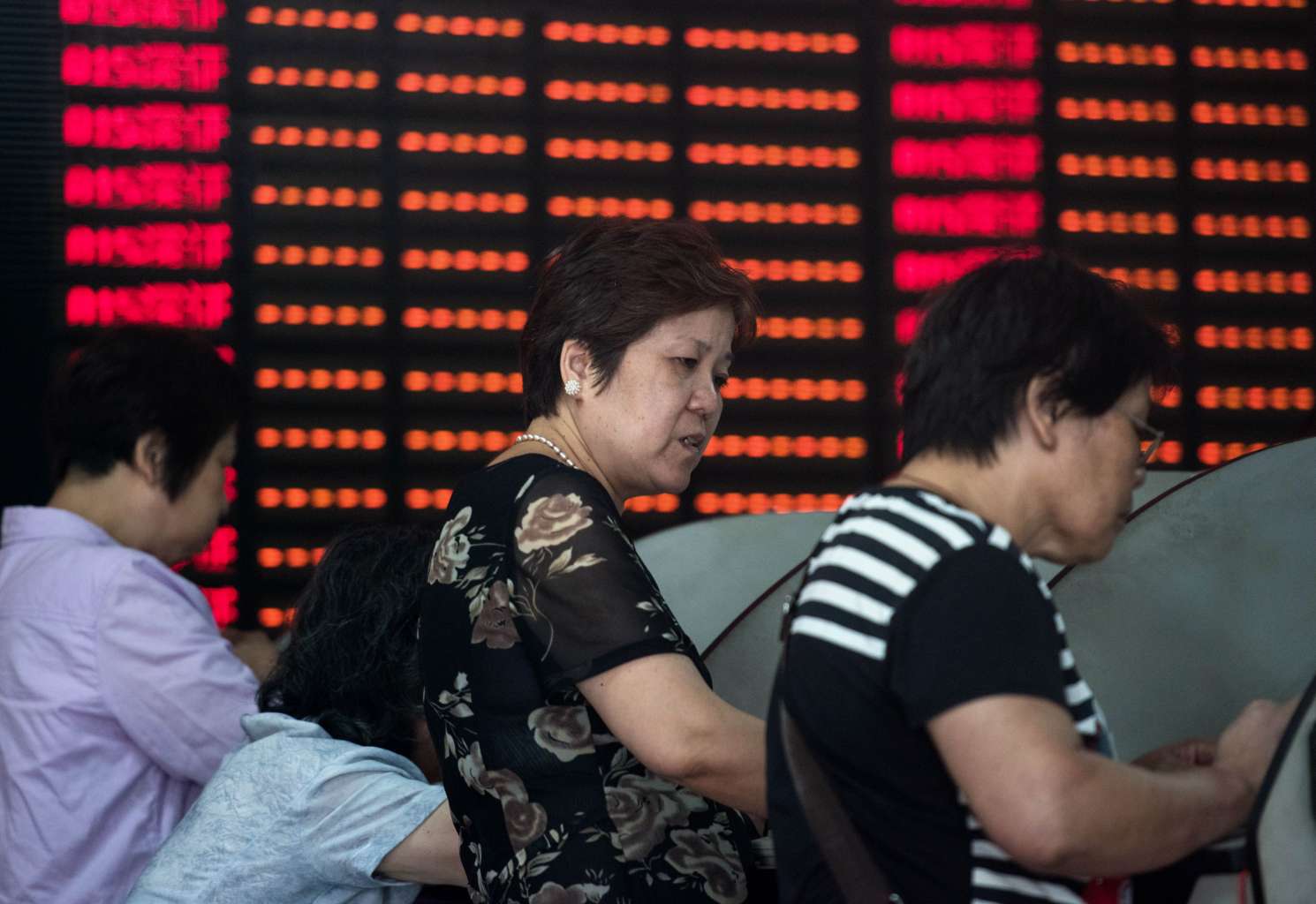 Investors monitoring stock market movements at a brokerage house in Shanghai.