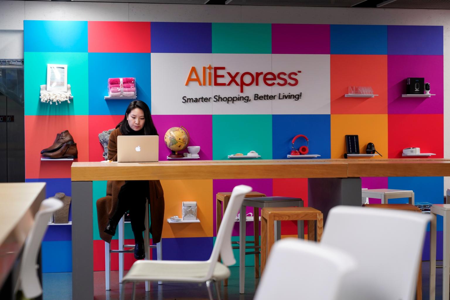 The logo of AliExpress is seen at Alibaba Expansion office at the Alibaba company's headquarters in China on Nov 18, 2019.