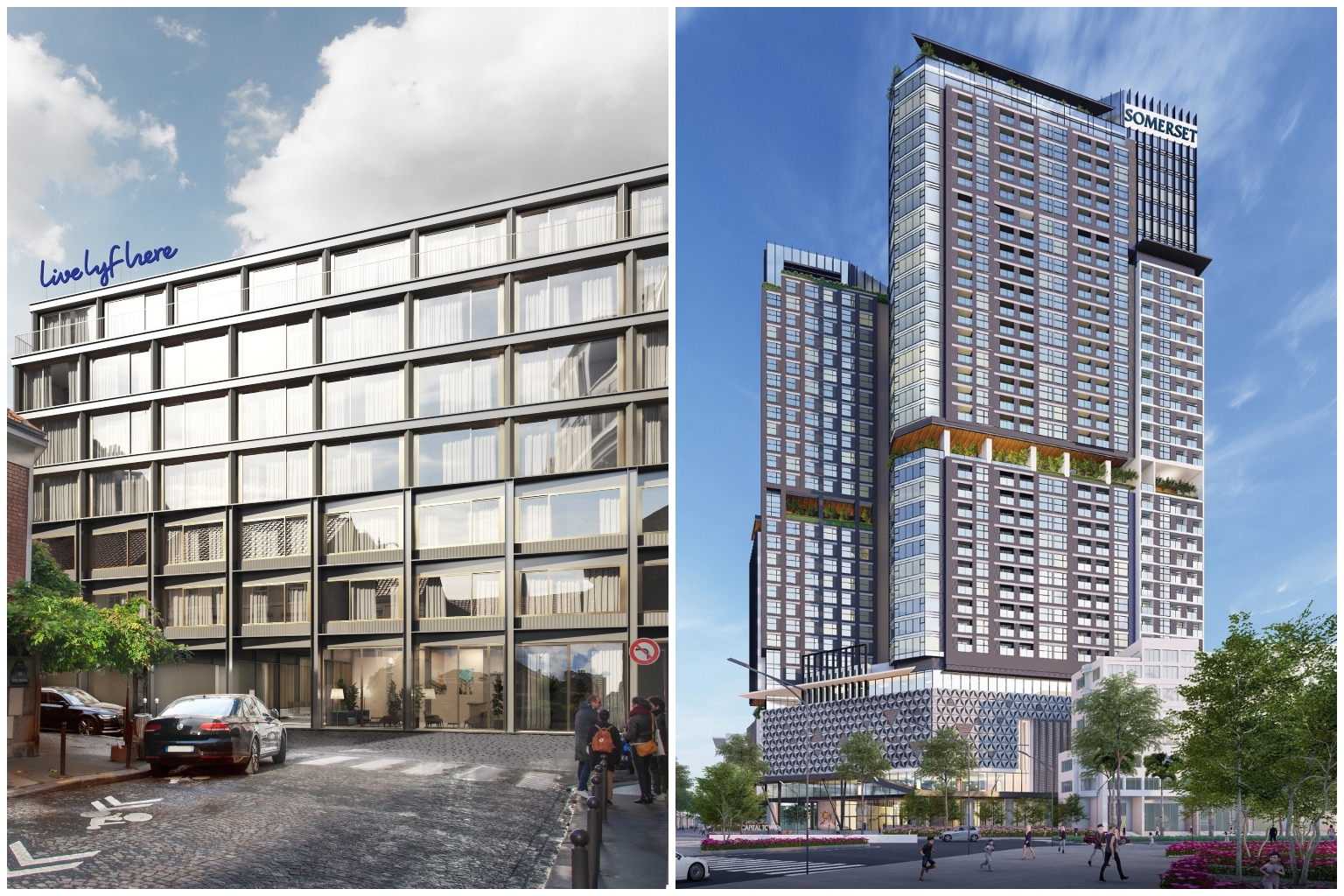 Ascott will acquire a freehold asset in Paris named livelyfhere Gambetta Paris (left) and the 364-unit Somerset Metropolitan West Hanoi.