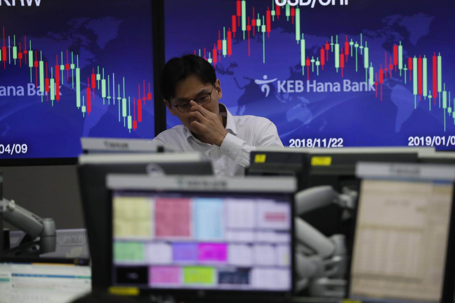 A dealer working at the KEB Hana Bank in Seoul, South Korea.