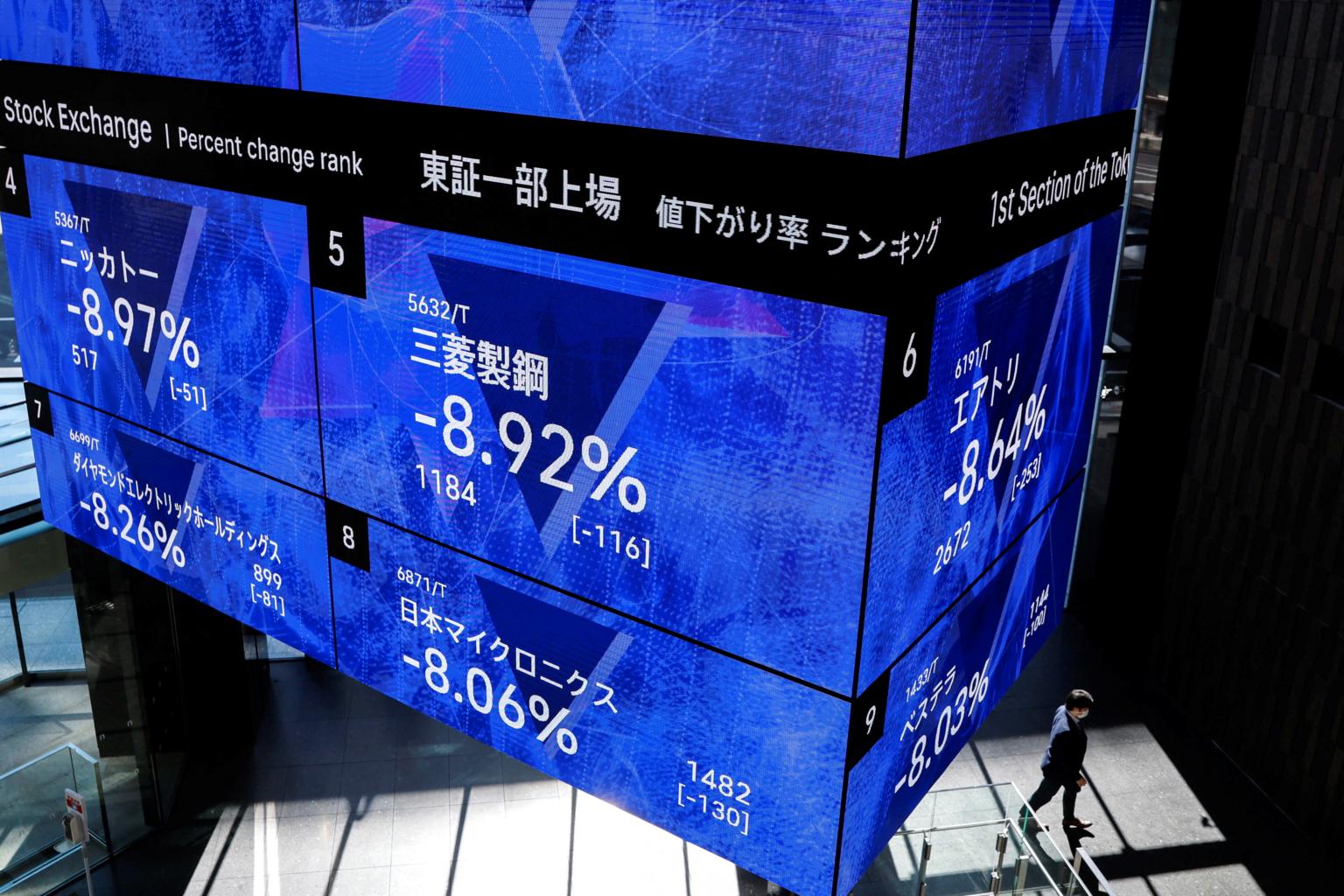 SYDNEY (BLOOMBERG) - Asian stocks and US equity futures tumbled on Monday (March 7), while havens including gold and sovereign bonds rose, amid fears of an inflation shock in the world economy as oil soared on the prospect of a ban on Russian crude supplies.