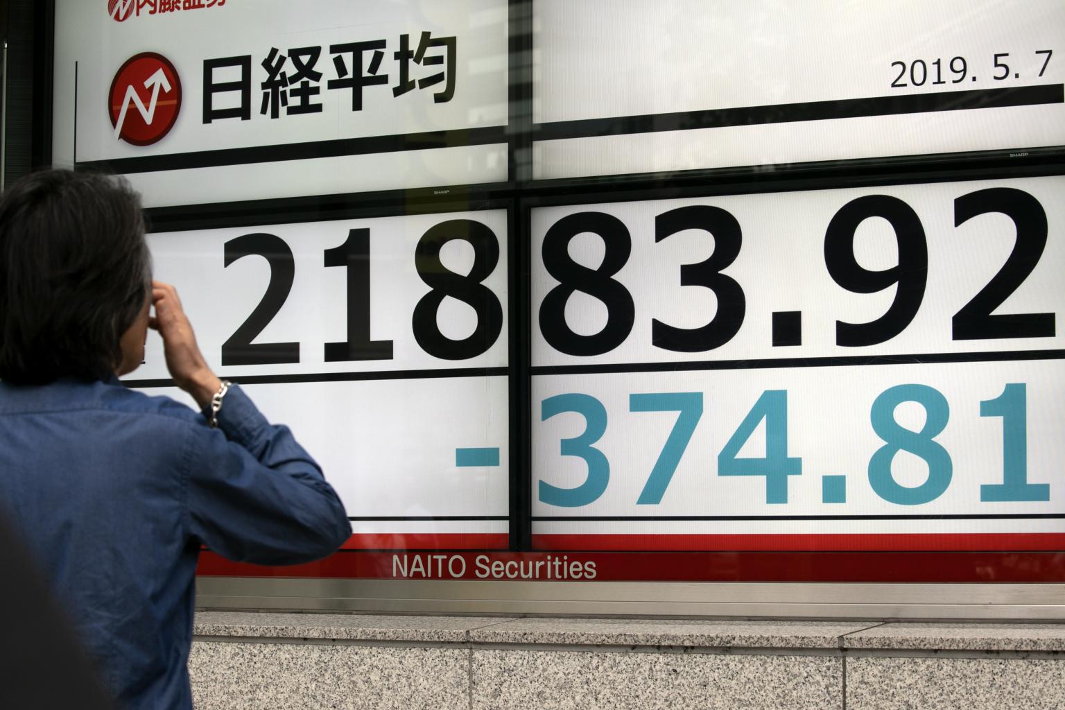 HONG KONG (AFP) - A red wave swept across Asia trading floors on Wednesday (May 8) as investors grow increasingly concerned that the China-US trade deal, which appeared all by ready to sign, could fall through.