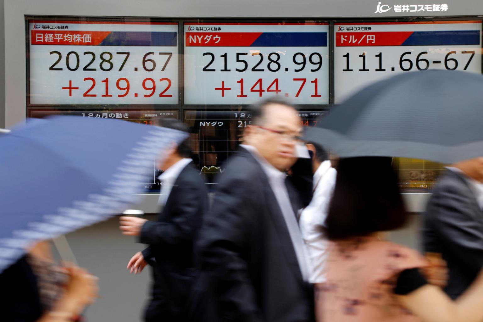 People walking past a brokerage in Tokyo, Japan, on June 20, 2017.