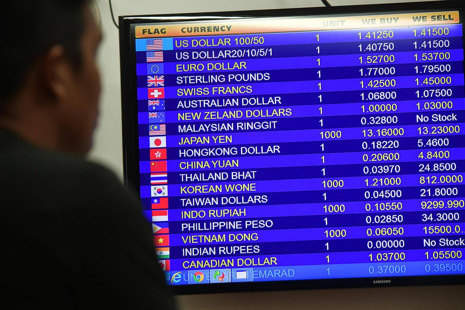 An electronic board informing customers that the Malaysian Ringgit is out of stock at a Change Alley money changer on Nov 14, 2016.