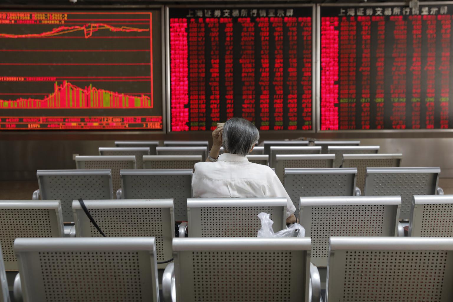 A Chinese investor sitting in front of an electronic board showing the stock prices at a securities brokerage house in Beijing, China, on June 19, 2019.