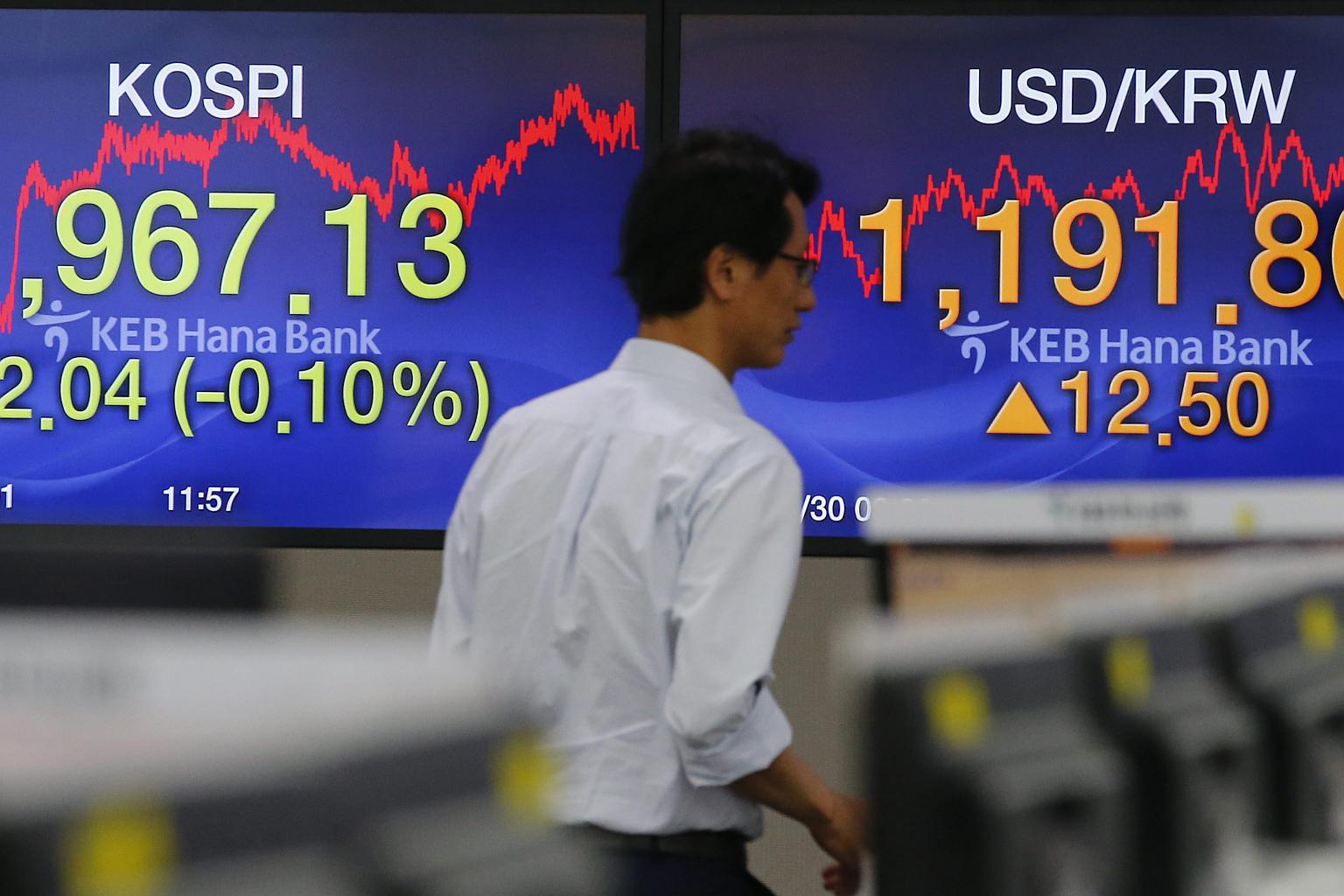 An electronic bulletin board at the main office of KEB Hana Bank in central Seoul, South Korea, May 30.