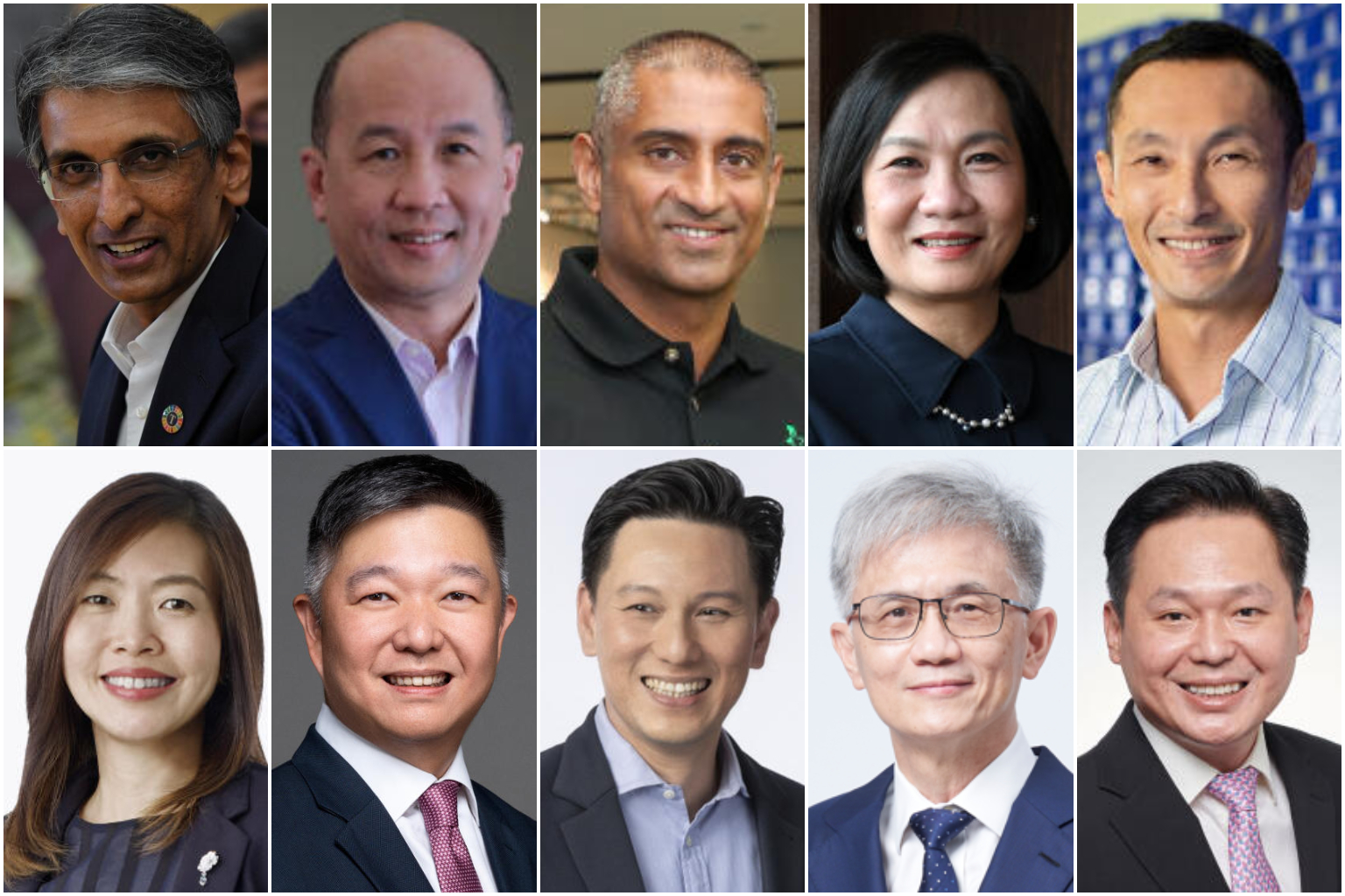 (Clockwise from top left) Mr Dilhan Pillay Sandrasegara, Mr Yuen Kuan Moon, Mr Nikhil Eapen, Ms Helen Wong, Mr Vincent Phang Heng Wee, Mr Gary Ho Hock Yong, Mr Lee Ghai Keen, Mr Kerry Mok, Mr Nicholas Chua and Ms Anthea Lee.