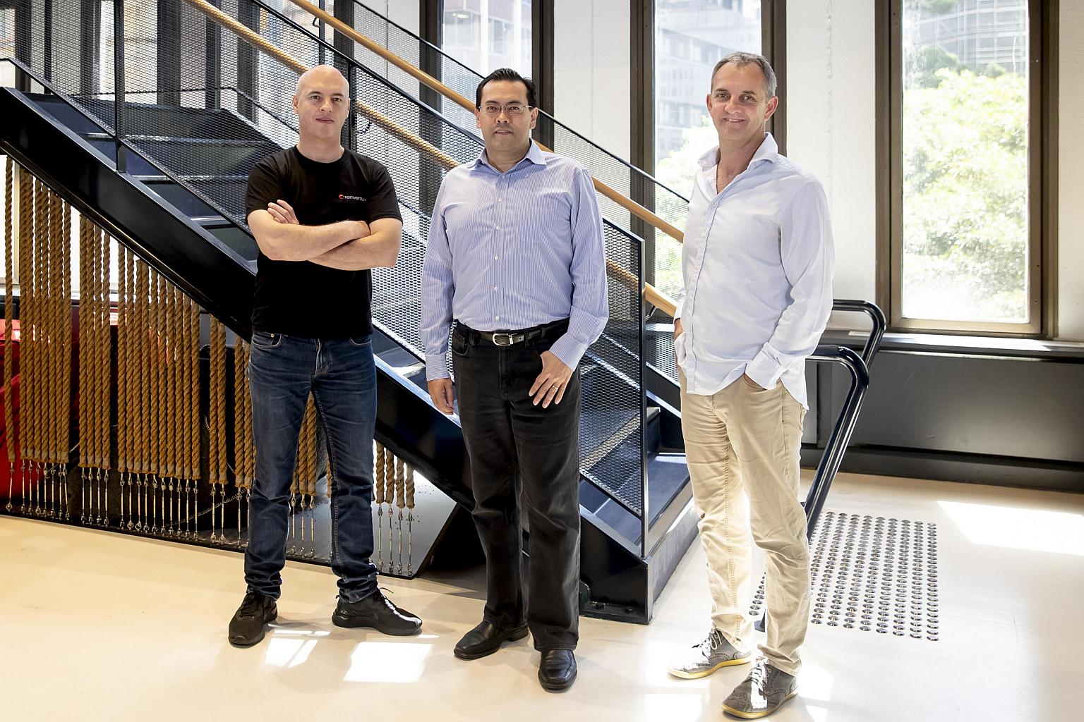 (From left) Data Republic co-founder Danny Gilligan, Singtel Innov8 CEO Edgar Hardless and Data Republic CEO and co-founder Paul McCarney.