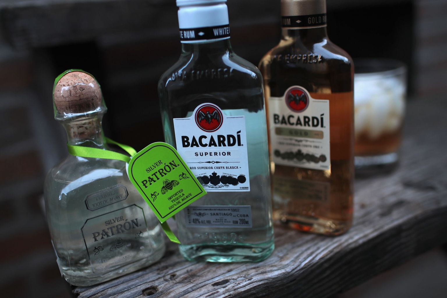 Bacardi rum and Patrón tequila are pictured on Jan 22, 2018, in Chicago, Illinois.
