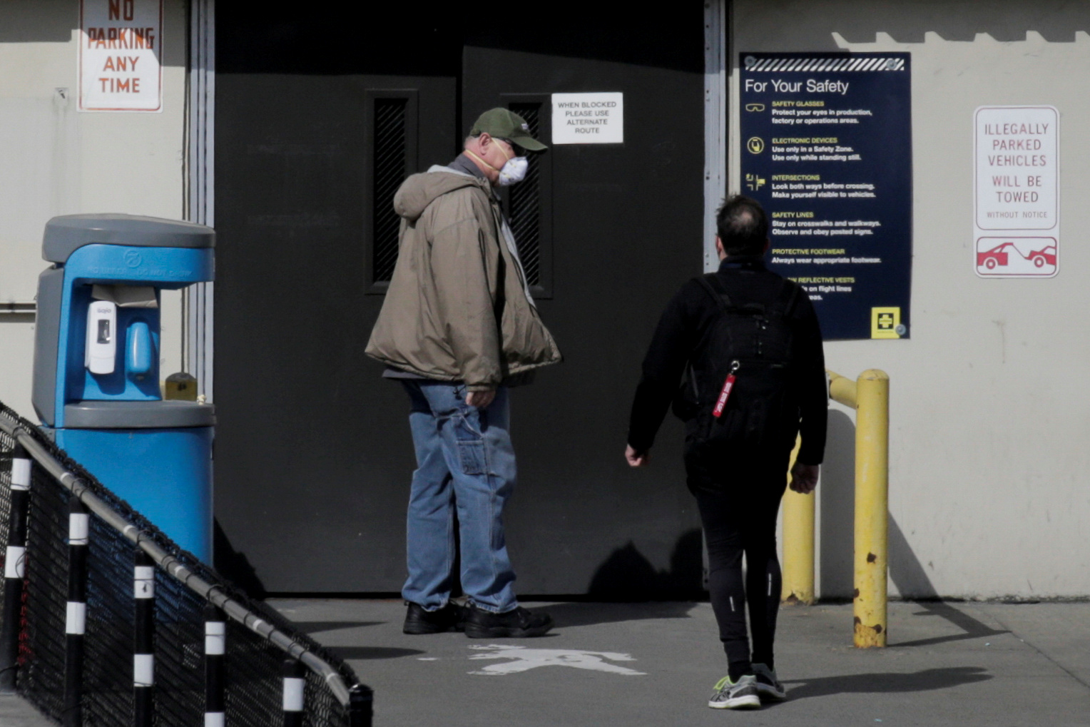 Workers enter the Boeing Everett Factory, amid the coronavirus outbreak, in Everett, Washington.