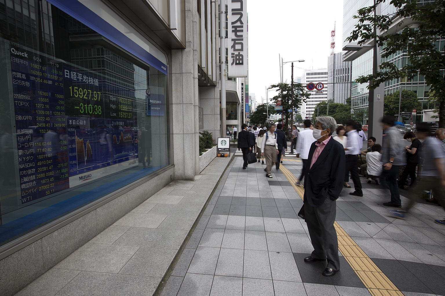 A man looks at an electronic stock board outside a securities firm in Tokyo.