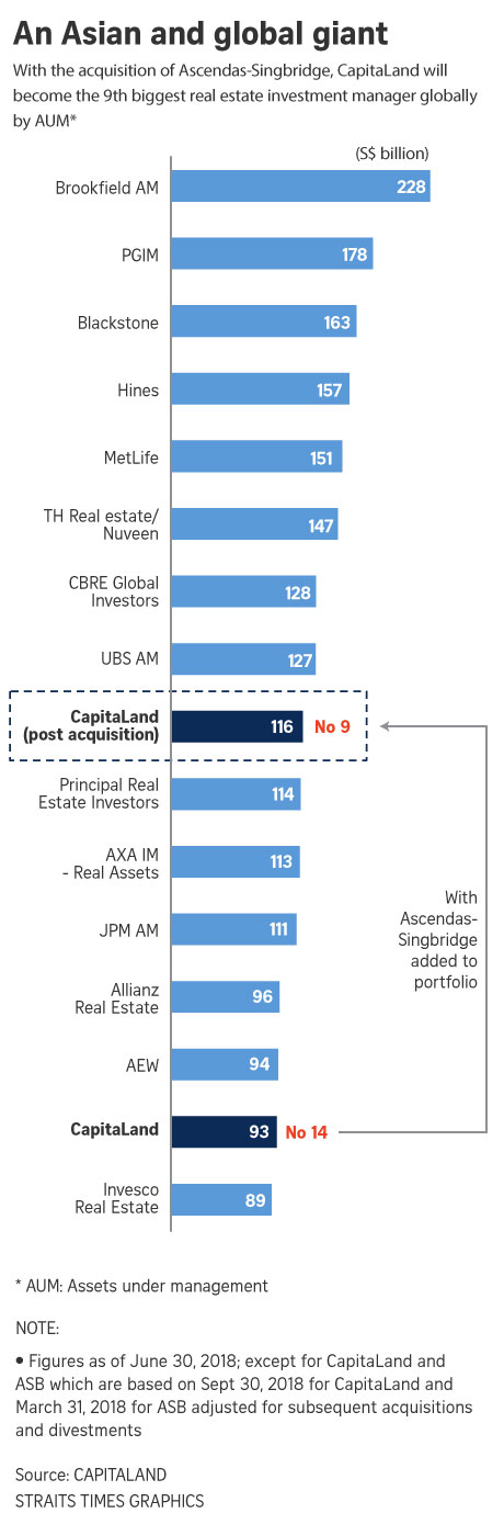 The deal will also boost income growth. CapitaLand said its historical pro forma fee income will jump by over 40 per cent from $238 million to $337 million.