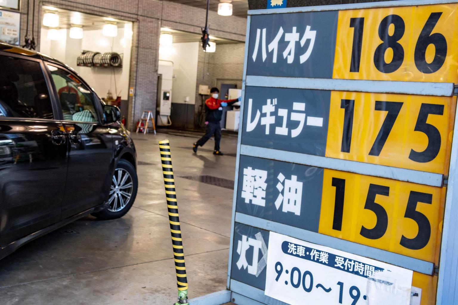 Pump prices displayed at a petrol station in Tokyo on Jan 18, 2022.