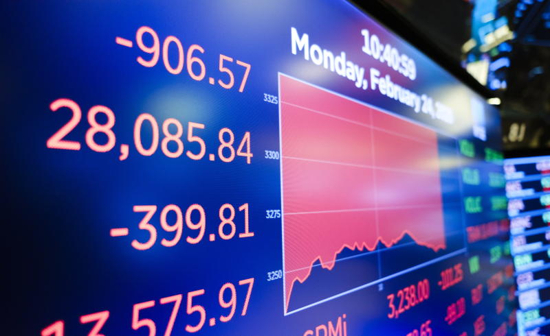 A screen shows the Dow Jones industrial average on the floor of the New York Stock Exchange on Feb 24, 2020.
