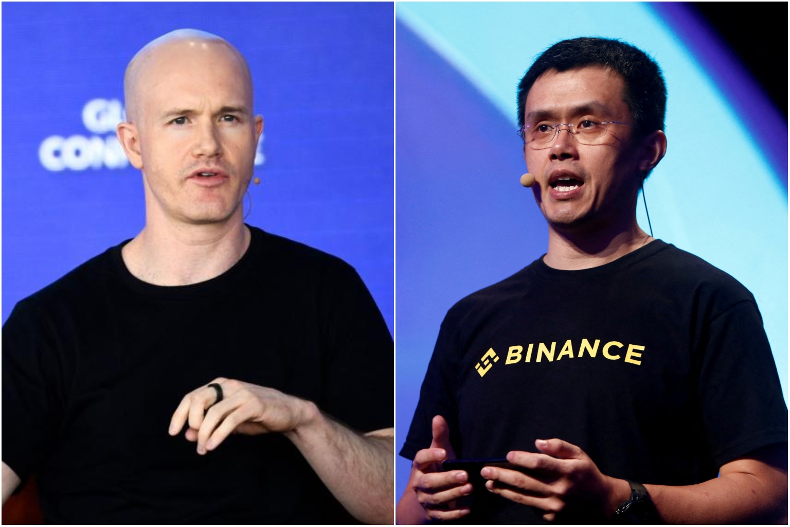 Coinbase Global founder Brian Armstrong (left) and Binance CEO Zhao Changpeng both reported personal fortune losses.