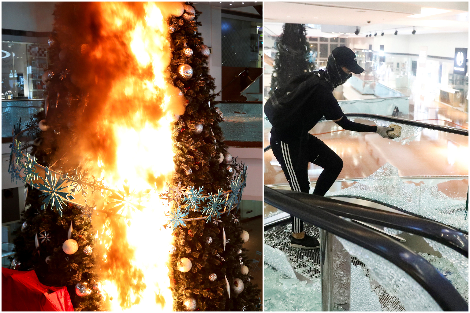 Anti-government protesters had set fire to the Christmas tree and caused other damage in Festival Walk mall in Hong Kong on Nov 13, 2019.