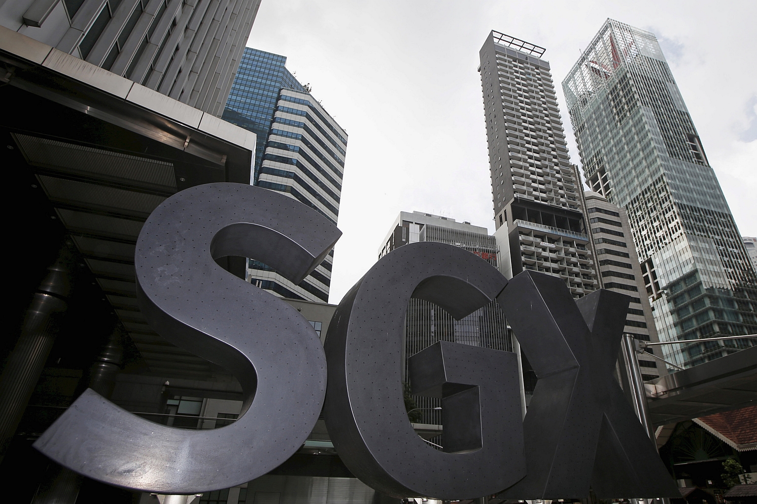 The Singapore Exchange (SGX) sign sits outside its premises in the Central Business District of Singapore.