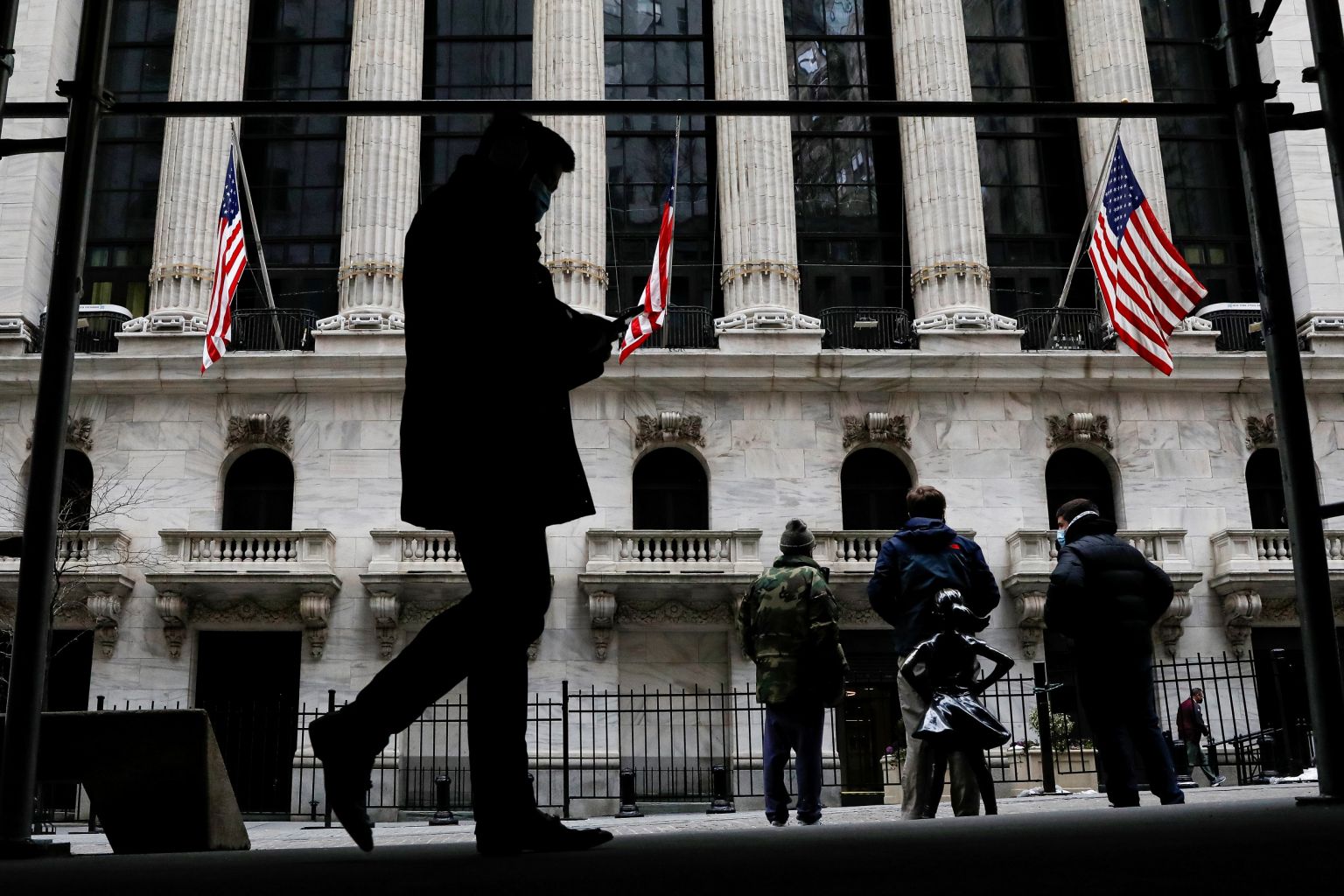 The Fearless Girl statue is seen outside the New York Stock Exchange, Feb 12, 2021.