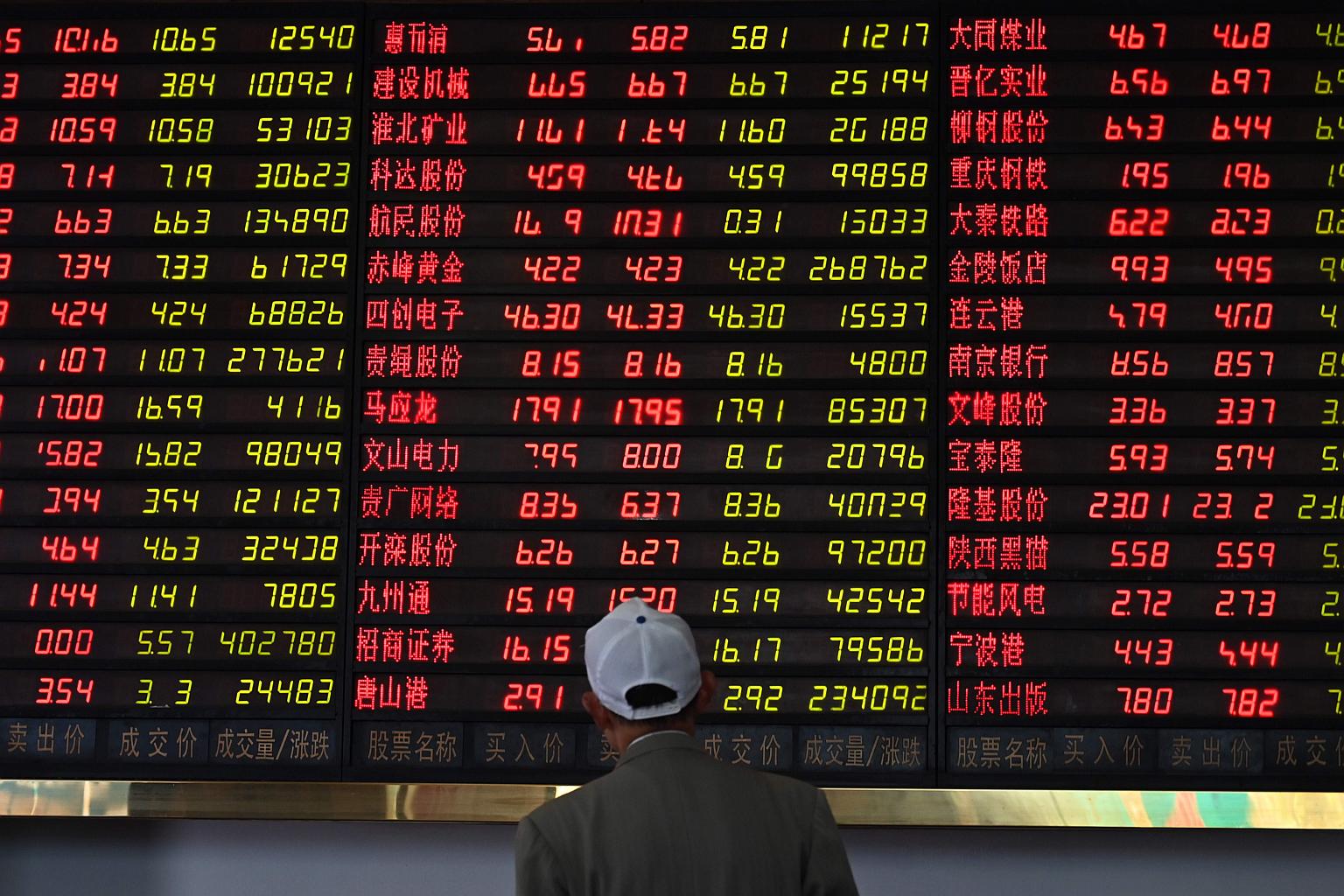Investors monitor stock price movements at a securities company in Shanghai on May 8, 2019.
