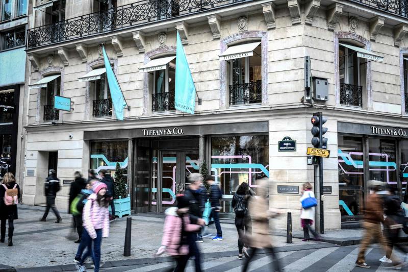 People walk past US luxury jewellery chain Tiffany & Co's in Paris on Oct 29, 2019.