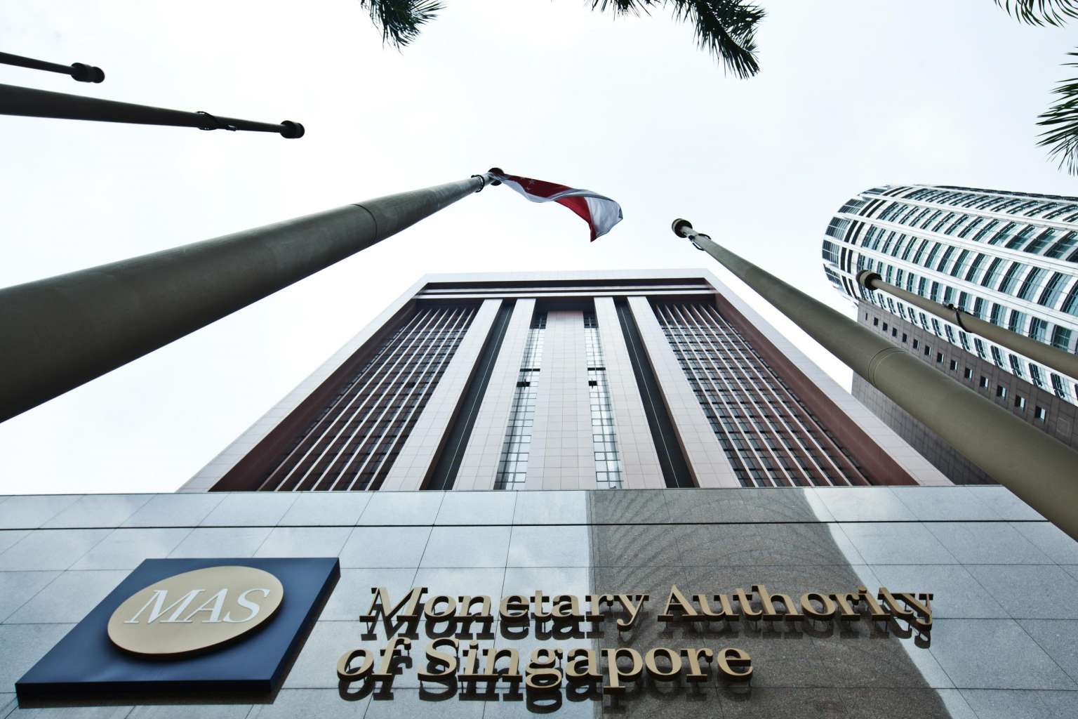 Signage for the Monetary Authority of Singapore (MAS) is displayed outside the central bank's headquarters in Singapore.