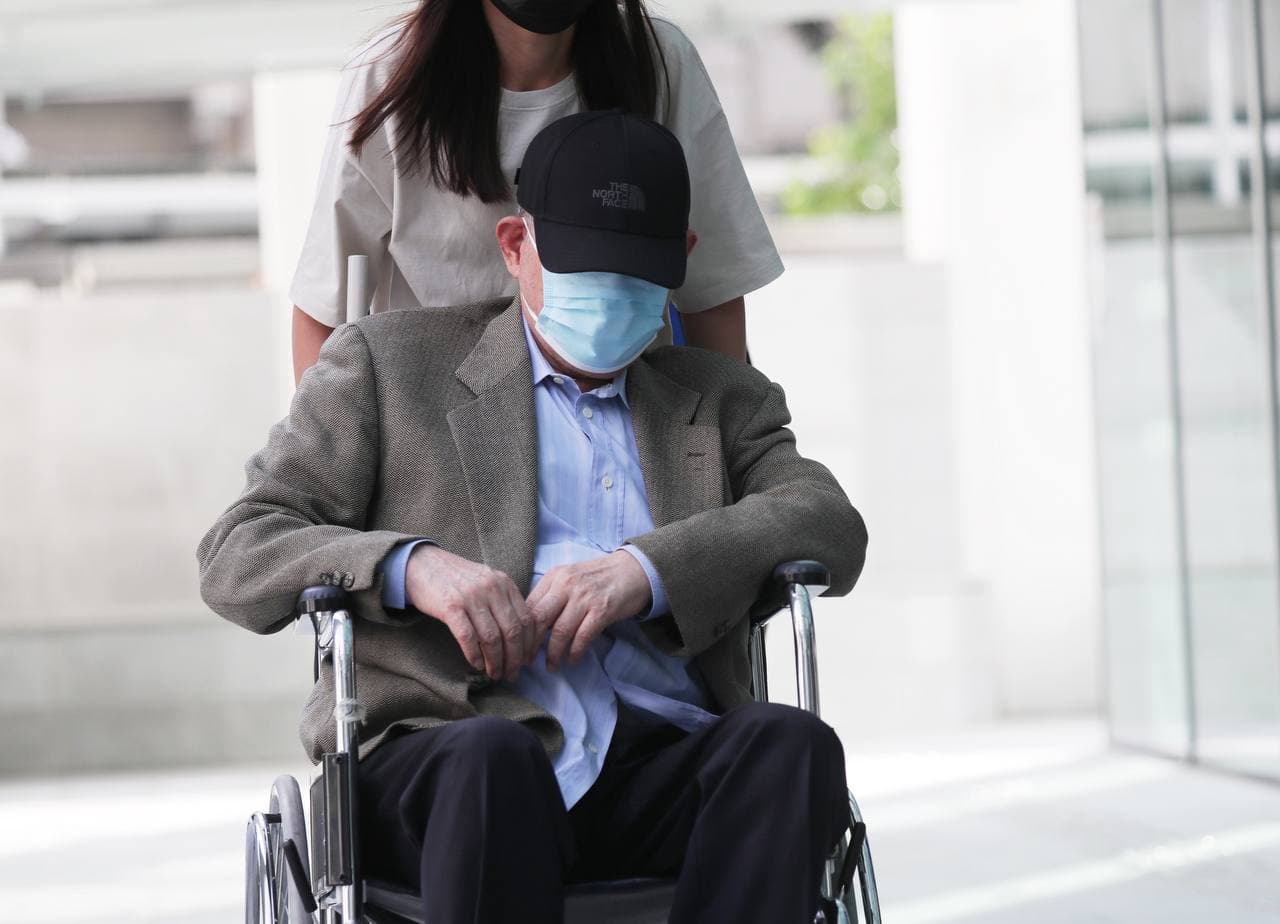 O.K. Lim arriving at the State Courts, on June 24, 2021. He is now facing a total of 130 charges.